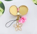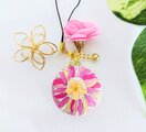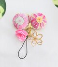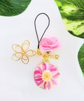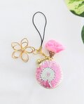 明るいピンクの花タッセルとゴールドフラワーチャーム付き