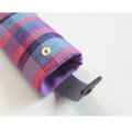 外寸約8×19cmのコンパクトサイズに、アイリッシュリネン糸を職人が手染めし、チェック生地を1点ずつ手織りで仕上げました。いつも持ち歩くメガネをスタイリッシュに収納でき、キズやホコリからしっかりガードします。