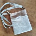優しい雰囲気の薔薇の刺繍が施されたナチュラルリネンのスマホショルダーです。