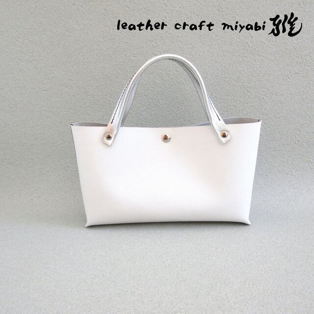 ◎真っ白なマイクロシュリンクにメタリックシルバーのハンドルが映えるミニトートです(^^