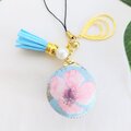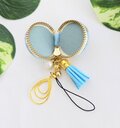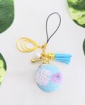 スカイブルーのタッセルとロンデルパールのチャーム付き