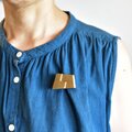 農家の納屋に永年にわたって打ち捨てられていた朴木の板を譲り受け、切り出して削って磨いて、ブローチを作りました。
