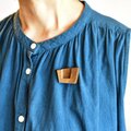 農家の納屋に永年にわたって打ち捨てられていた朴木の板を譲り受け、切り出して削って磨いて、ブローチを作りました。