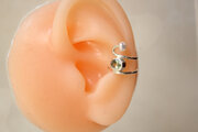 イヤーカフは耳他部の薄いところから入れて、自分の耳にフィットする箇所で固定させて使います。