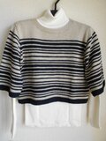 ご迅速な発送に感謝します。写真通りのすてきなセーターです。メリハリが効いている色合いと爽やかなコットン編み地は今の季節にちょうどいいです。長く着られて良い買い物でした。また新たなご縁を楽しみにしています。ありがとうございました。