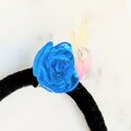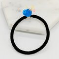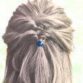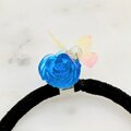 結った髪に手作りの螺鈿と金箔の模様入りのヘアゴムで