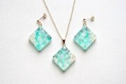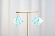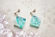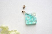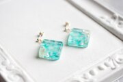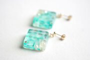 レジンアート スクエアピアス〈水紋・グリーン〉