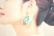 ホワイトとグリーンが描く波紋がまるで南国の海の水面のような、その透明感の美しさに魅入ってしまうピアス。