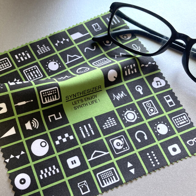 シンセサイザーアイコンデザインのメガネふきです。