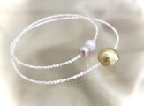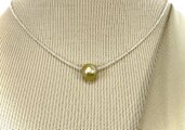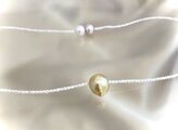 その一粒で気分が上がり、華やかさをもたらしてくれる。そんな魔法のような真珠ってあるのかな。そんなことを考えながら真珠のストックをチェックしていて見つけたのが、南洋ゴールデン真珠。形はラウンドではなく唯一無二のバロック。そしてこの色合いとテリ感。チェーンは極細、純白の淡水ケシ真珠の連と決めていました。白と金の組み合わせが華やかで可愛らしい。