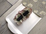 丸い花びらのくるんとしたフォルムが愛らしい紫陽花のポニーフックになりました。3色展開。グリーンブラウンは花びらの縁はレッドブラウン色、ダークカーキ色で奥行きがある色あい。
