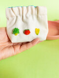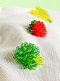 かわいらしい野菜のモチーフがビーズで立体的に表現された、ユニークなアイテムです。