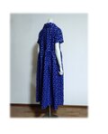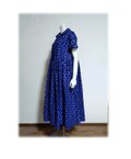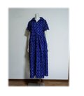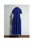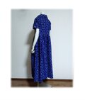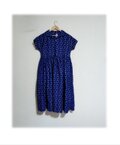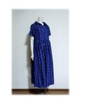 476 1点物 抜き衿レトロワンピース デッドストック浴衣地 ろうけつ染め風 昭和レトロ イタリアンカラ― 紺色 夏のお出かけ