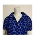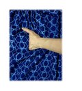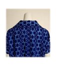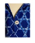 紺地にブルーの籠のような編み柄がろうけつ染め風に染められた、