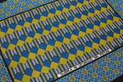 カンガ|ジオメトリック セルリアンブルー × イエロー アフリカ布 アフリカンプリント