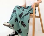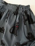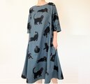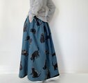 こなまいきな黒猫のロングスカート*ポケット付き*マキシ丈*国産コットン100%*ブルーグレー