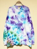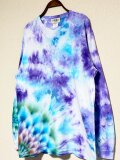 タイダイ 長袖 Tシャツ Lサイズ 曼荼羅模様 ブルー×パープル ムラ染め HD24-62