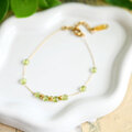 繊細なゴールドチェーンに、8月の誕生石「ペリドット」をあしらった上品なブレスレットです。