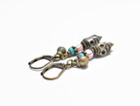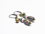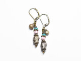 ファニーなスカルビーズとアンティークヴェネチアビーズ、民族鈴のピアス
