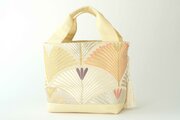 ゴールドのシルク帯地に松模様を織り込んだ、華やかで軽やかな印象のトートバッグです。