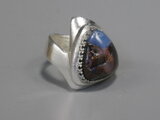 リングのサイズは13号、重さは17g、最大幅は25mm、金属部分は純銀です。