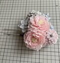 牡丹は淡いピンクの生地でひだ寄せつまみという技法を使っています。