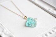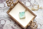 レジンアート スクエアペンダント〈水紋・グリーン〉