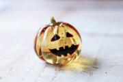バーナーワークの技法で制作した、ガラスのジャックオランタン、かぼちゃです。