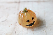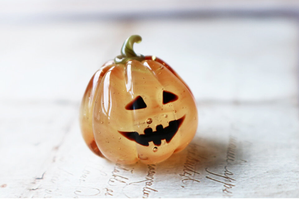 バーナーワークの技法で制作した、ガラスのジャックオランタン、かぼちゃです。