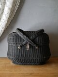 婚約の際、男性から女性に贈られたパニエです。中にはレースや大事なものを詰めて、結婚後には裁縫箱の役割を担っていたそうです。