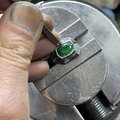 クラシカルな形カットの石を、石の形に合わせて、石の形に伏せこみ留