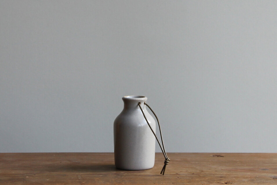 革紐付き小瓶ブルーグレー2受け取りました。梱包が二十三重と懇切丁寧に包まれておりなんの傷もなく届きました。写真通りで色も形も大きさ全てとても可愛いです。歪みもヒビもないしプロだなと思う素晴らしい作品。さっそくサイドテーブルに飾りました。 この度は良きお品をありがとうございました。