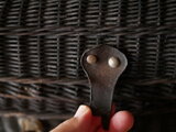 留め具のレザーが切れてなくなっていますが、ハンドルの金具がかっこいいです。