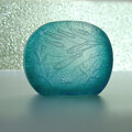 通常は レリーフのある凹凸面が表になっていますが、今回は ガラスが溶けて平らな水面のようになっている側から 海の中の世界を覗くオブジェになります。