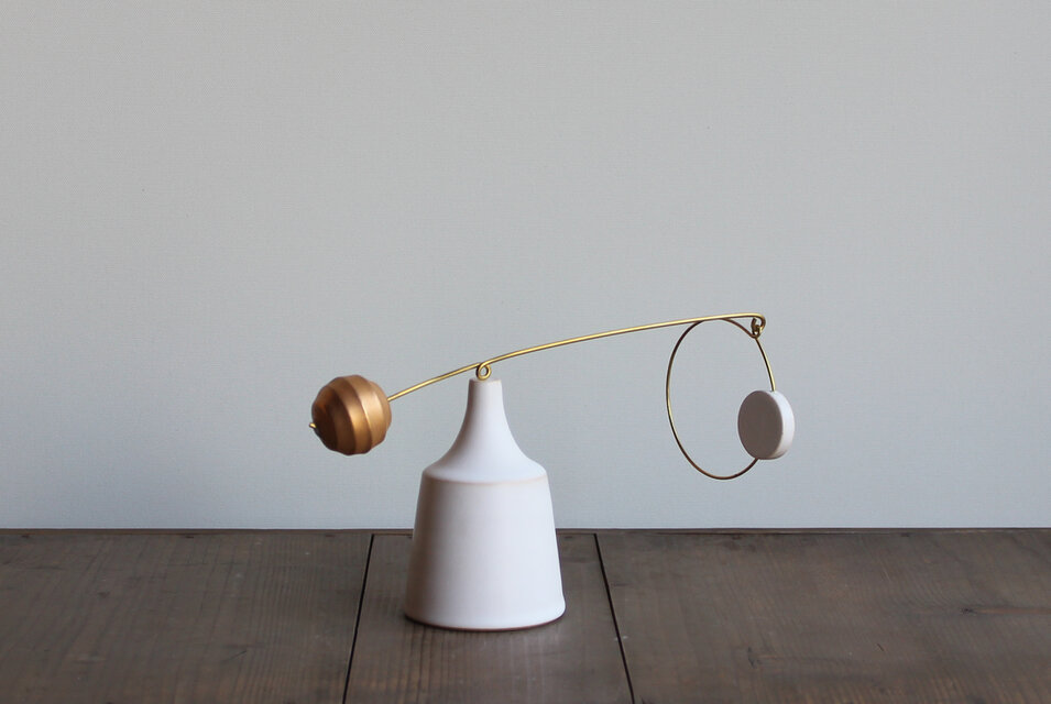 ロクロ成形した土台、モチーフを、真鍮棒と組み合わせました。