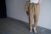 もんぺやたつけをベースにしたパンツはたくさんありますが、こちらはこの立体的なパターンと生地によって、モード感もある佇まいが他にないかと思います。着方の幅も広いため、長く、いろいろなコーディネートをお楽しみいただけたらと思います。