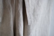 どことなく和装の雰囲気を持ちながらも、都会的なモダンな佇まい。上質なリネン生地の単一素材使いで、ボタンも裏地もなく、潔くシンプルな作りです。和洋、男女、年齢、サイズの別もなく、ユニセックスの1サイズのみ。