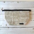 〔受注生産〕洗えるワイドランチバッグ コンビニ弁当が入るマチ広タイプ(英字ロゴ ハーフリネンキャンバス)