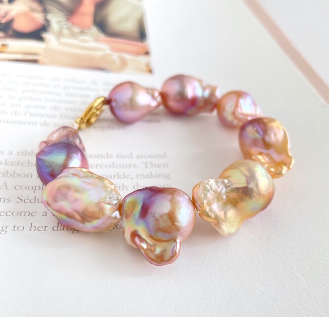 オイスターバロックパールのブレスレット ゴールデンミックスカラー 中粒 1点のみ