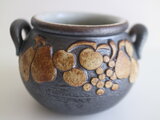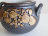 ポットの縁に製造時に出来たピンホールがございます。これは素焼きの段階で器に含まれた空気が焼成時に釉薬の表面で気泡となって現れるもので欠陥ではございません。その他、ヒビや欠けのような大きなダメージはなく、とても良いヴィンテージコンディションを保っています。