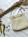 ニット(ポリエステル)、パール、ゴールドチェーン、タグ(コットン)