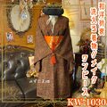 着物リメイクワンピース ドレス|化繊(洗える)+名古屋帯サッシュベルト|和洋折衷 レトロ 古着 KW-1030