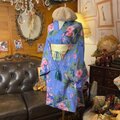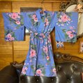 【浴衣リメイク ミニミディ ワンピース ドレス 帯サッシュベルト付 和洋折衷 レトロ 古着 ハンドメイド 青藤ガーデン W-666】