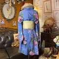 浴衣リメイク ミニミディ ワンピース ドレス 帯サッシュベルト付 和洋折衷 レトロ 古着 ハンドメイド 青藤ガーデン W-666