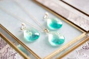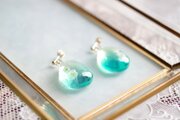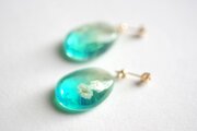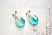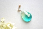 ドロップ型のレジンにお花を二輪咲かせた可憐なピアスです。