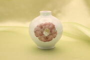 白磁に和絵具で椿を描きました。置いておくだけで存在感があり、棚の上の飾りとしてもアクセントになります。