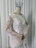 ボレロ ハンドメイド キラキラスパンコール 長袖 くるみボタン 結婚式
