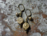 コインの様なインドブラス、小さな民族鈴を繋いだピアスです。