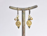 コインの様なインドブラス、小さな民族鈴のピアス