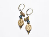 コインの様なインドブラス、インディゴブルービーズ、小さな民族鈴のピアス